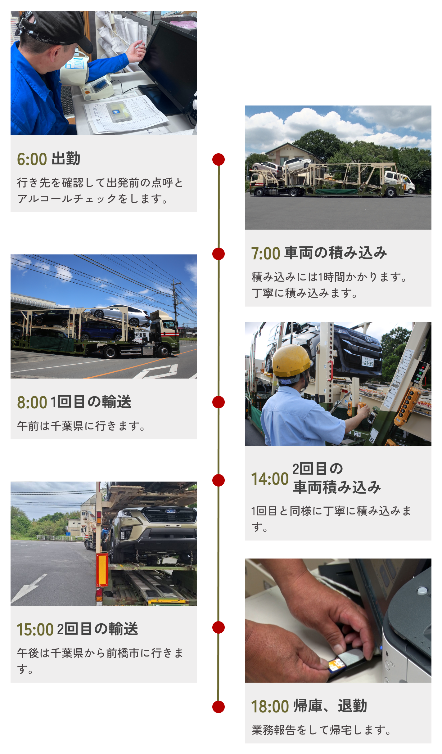 当社の配車業務は、自動車メーカー様からの輸送依頼が中心のため、新規の荷物を探す営業活動や、売上ノルマに追われることはありません。